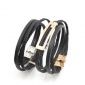 韩版双层真皮四环手链 复古手工编织朋克皮手链 不锈钢真皮手镯