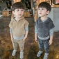 2017春秋新款男童三件套中小童条纹打底衫+灯芯绒连帽套装